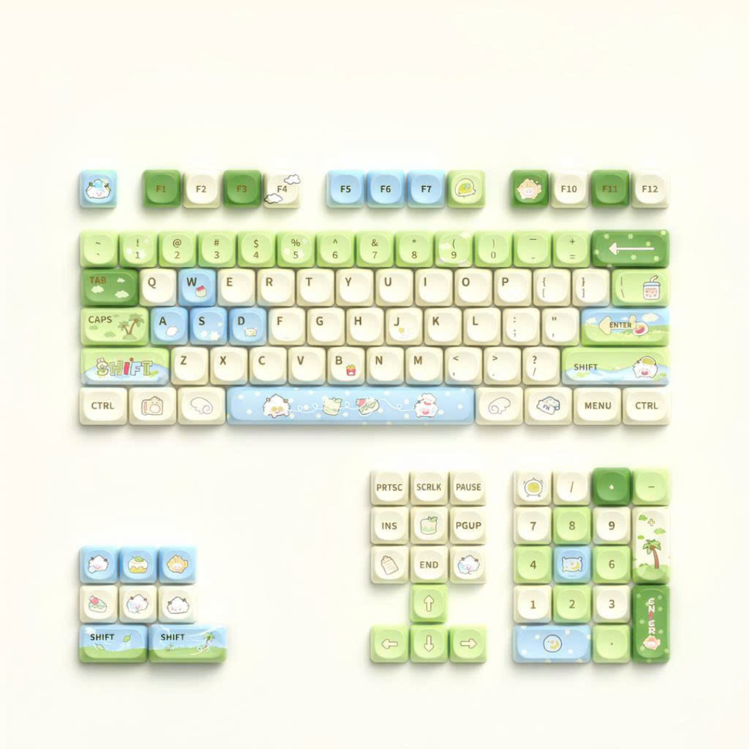 Kiểu in: Sublimation process (Nhuộm thăng hoa) Chất liệu: PBT (Polybutylene Terephthalate) Số lượng keycap: 112 nút (English) Profile: MOA